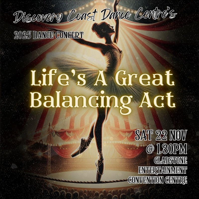 Life's A Great Balancing Act 22 Nov 2025 Join Discovery Coast Dance Centre for their 2025 concert! Tagged as: , Dance 01:30 PM
